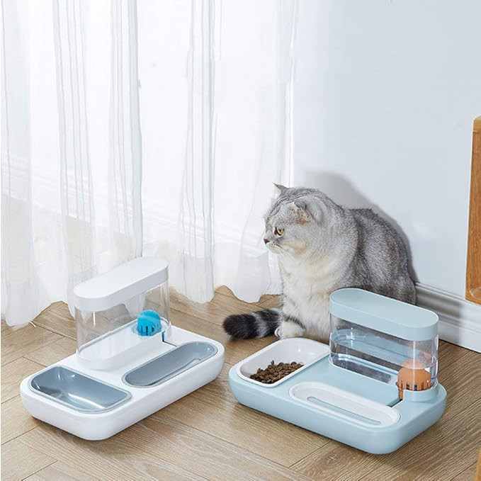 Simplify your pet's feeding routine with this thoughtfully designed dual-function dispenser. Perfect for cats and small dogs, this all-in-one unit includes both a food bowl and a water bowl with automatic water dispensing functionality.