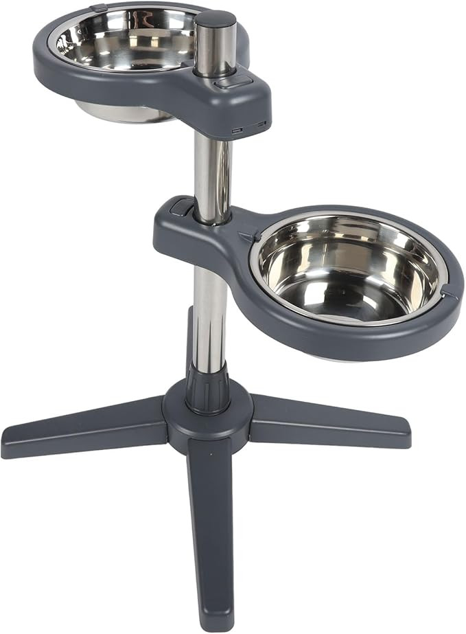 Adjustable Height: The stand features a telescopic pole with secure locks, allowing you to adjust the bowl height as your dog grows or based on their feeding needs.