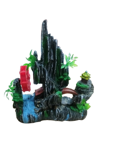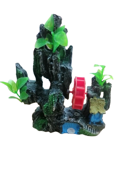 Transform your aquarium into a serene and dynamic underwater world with this eye-catching mountain waterwheel ornament.