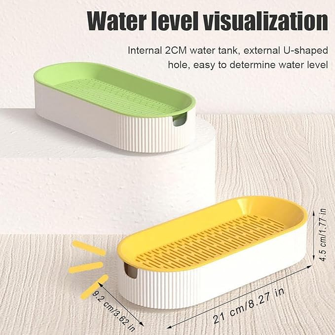 Includes an elevated tray with smart drainage to prevent water accumulation and mold buildup.
