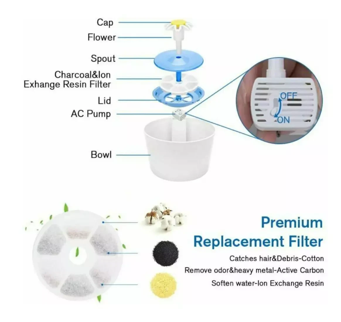 - Quiet & Energy-Efficient Pump: Runs silently to avoid disturbing pets while keeping water circulating for freshness.