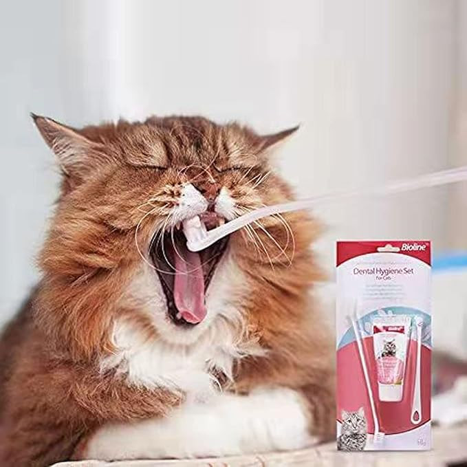 Keep your cat’s teeth clean and healthy with the Bioline Dental Hygiene Set, specially designed to maintain optimal oral hygiene. This convenient kit includes: