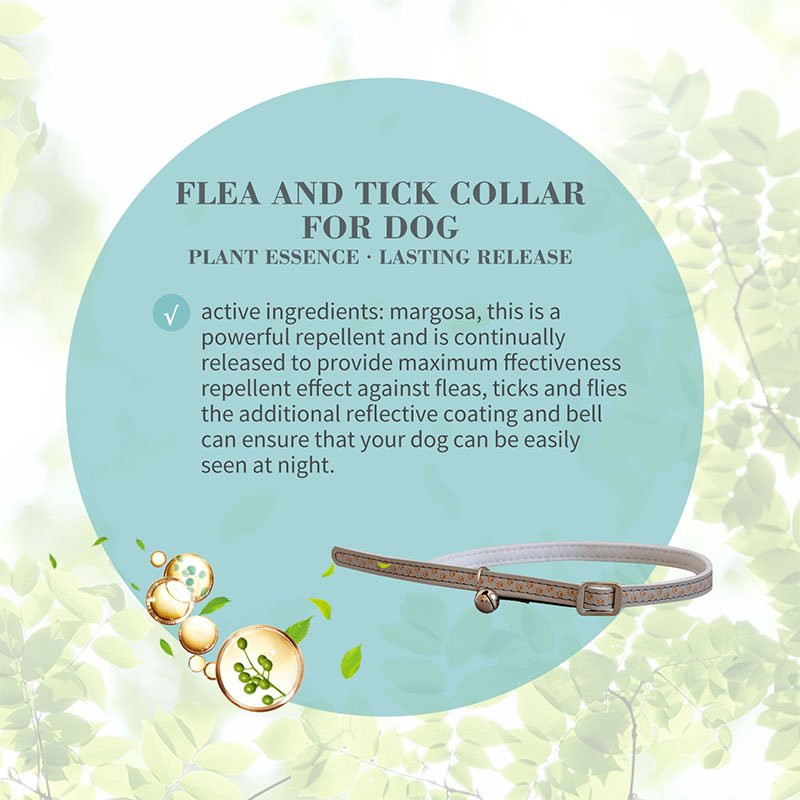 This flea and tick collar is specially designed to protect your dog from external parasites, ensuring a comfortable and itch-free experience. It provides long-lasting repellent effects using natural Margosa extract and CO2-extracted active ingredients embedded in a nonwoven material.