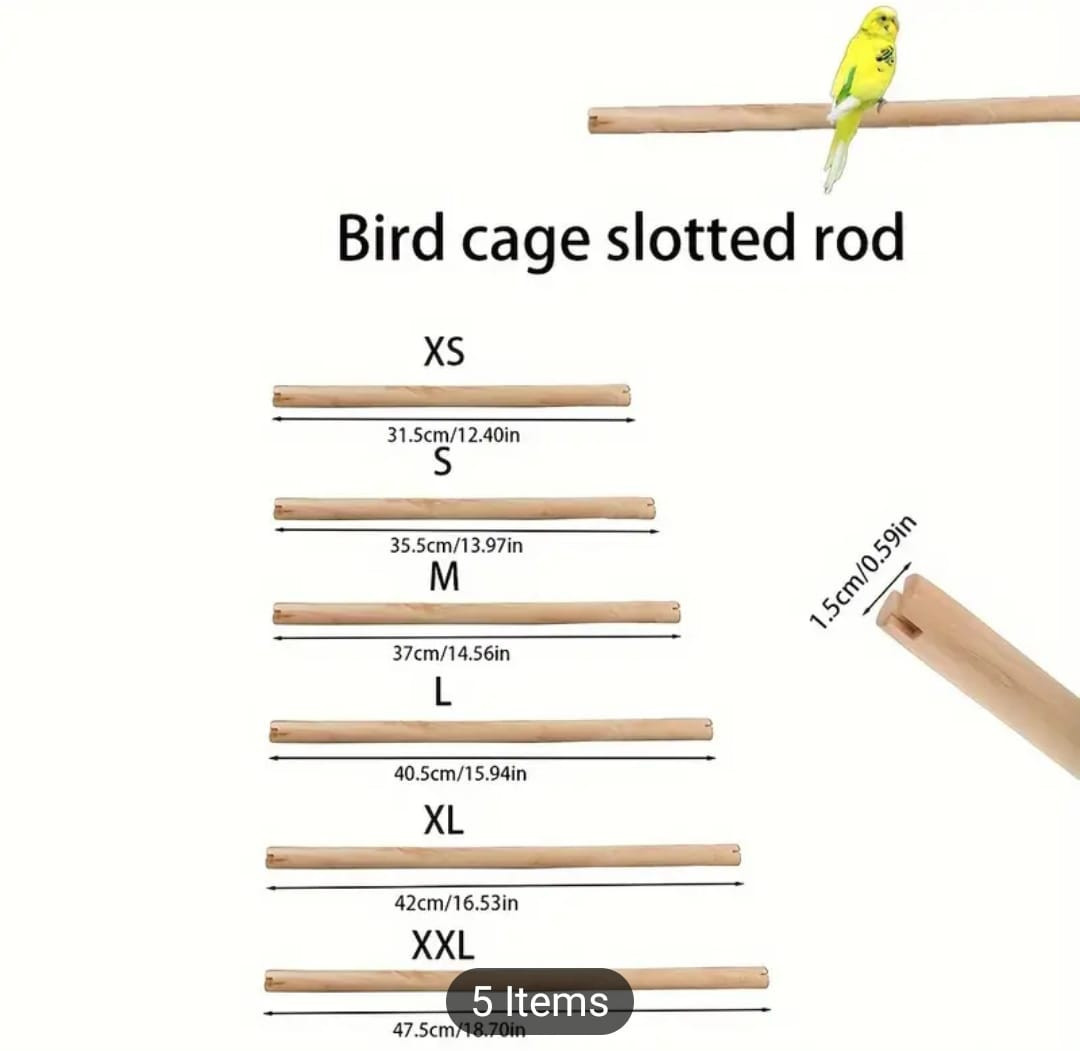 The Bird Cage Slotted Perch Rod is a durable and natural wooden accessory designed to provide a comfortable resting spot for your birds. Its slotted ends allow for secure and easy attachment to most bird cages, ensuring stability while your feathered friends perch, play, or rest.