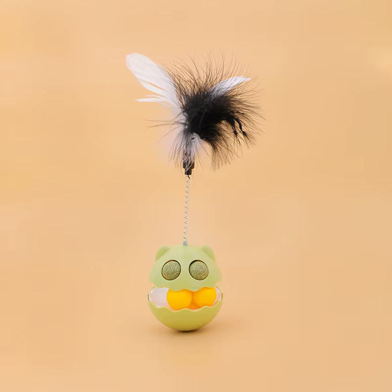 Keep your kitty entertained for hours with this quirky and fun cat toy! Designed with a bouncing spring feather and a playful face, this toy is more than just cute—it’s packed with stimulating features your cat will love.