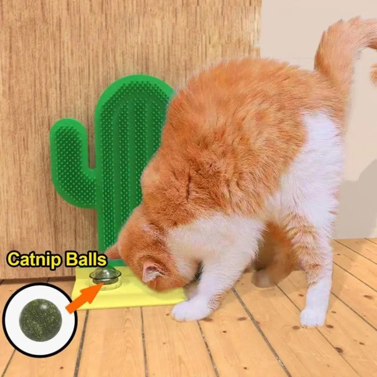 Cactus-Shaped Wall Self-Grooming Toy with Catnip Balls