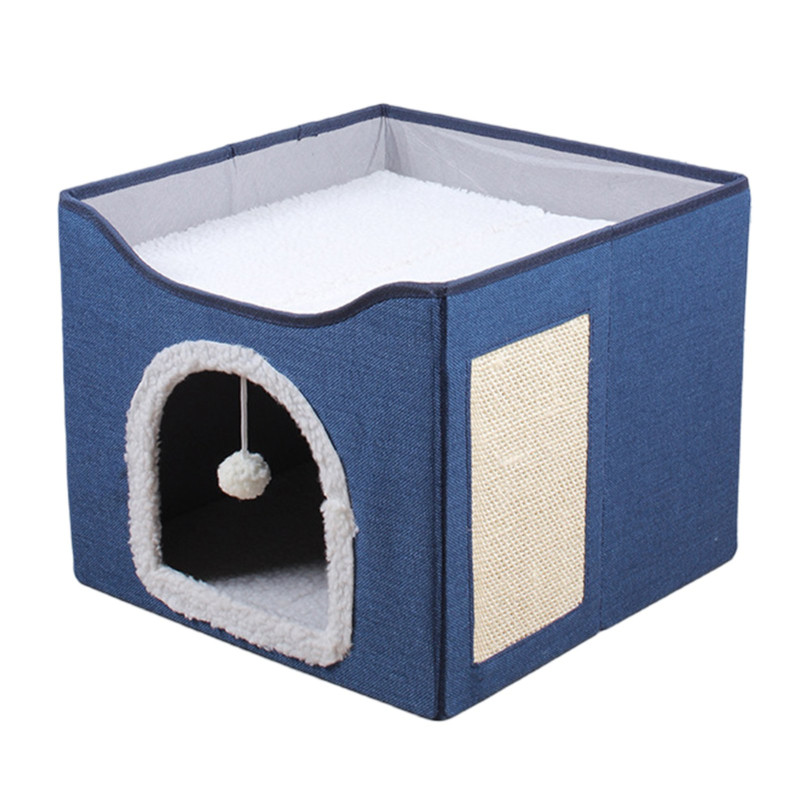Give your furry friend the ultimate comfort and entertainment with this Cat Bed House. Combining a cozy resting spot, a durable scratch pad, and a fun hanging toy, it’s the perfect all-in-one solution for your cat’s relaxation and playtime needs.
