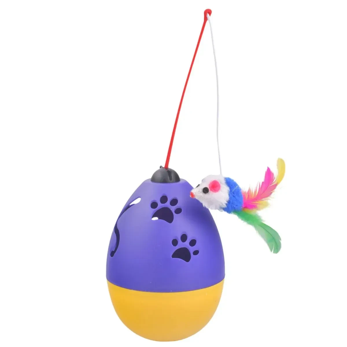 Available in multiple colors (purple, red, blue, orange), this toy combines durable plastic with interactive textures and sounds to captivate your pet’s attention. The feather mouse and bell provide irresistible movement and sound stimulation, making playtime exciting while preventing boredom.