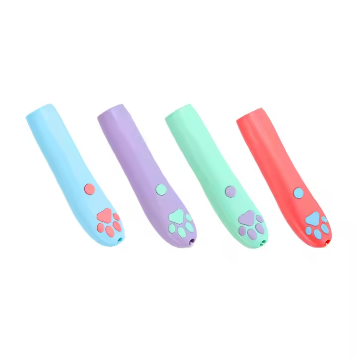 Enhance your cat's playtime with this fun and interactive laser pointer toy. Perfect for keeping your feline friend entertained and active, this toy is designed with a paw-shaped button for a playful and charming touch.