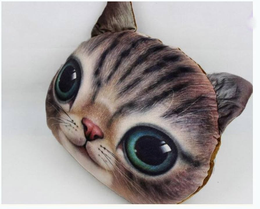 Add a touch of feline charm to your home décor with the Cat Pillows—cozy plush cushions designed to look like expressive cat faces. Each pillow features a lifelike design, with your choice of a brown tabby with striking teal eyes or a grey tabby with captivating green eyes.
