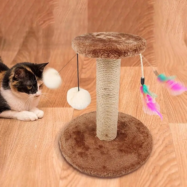 Cat Scratching Post with Feathers & Elastic Balls
