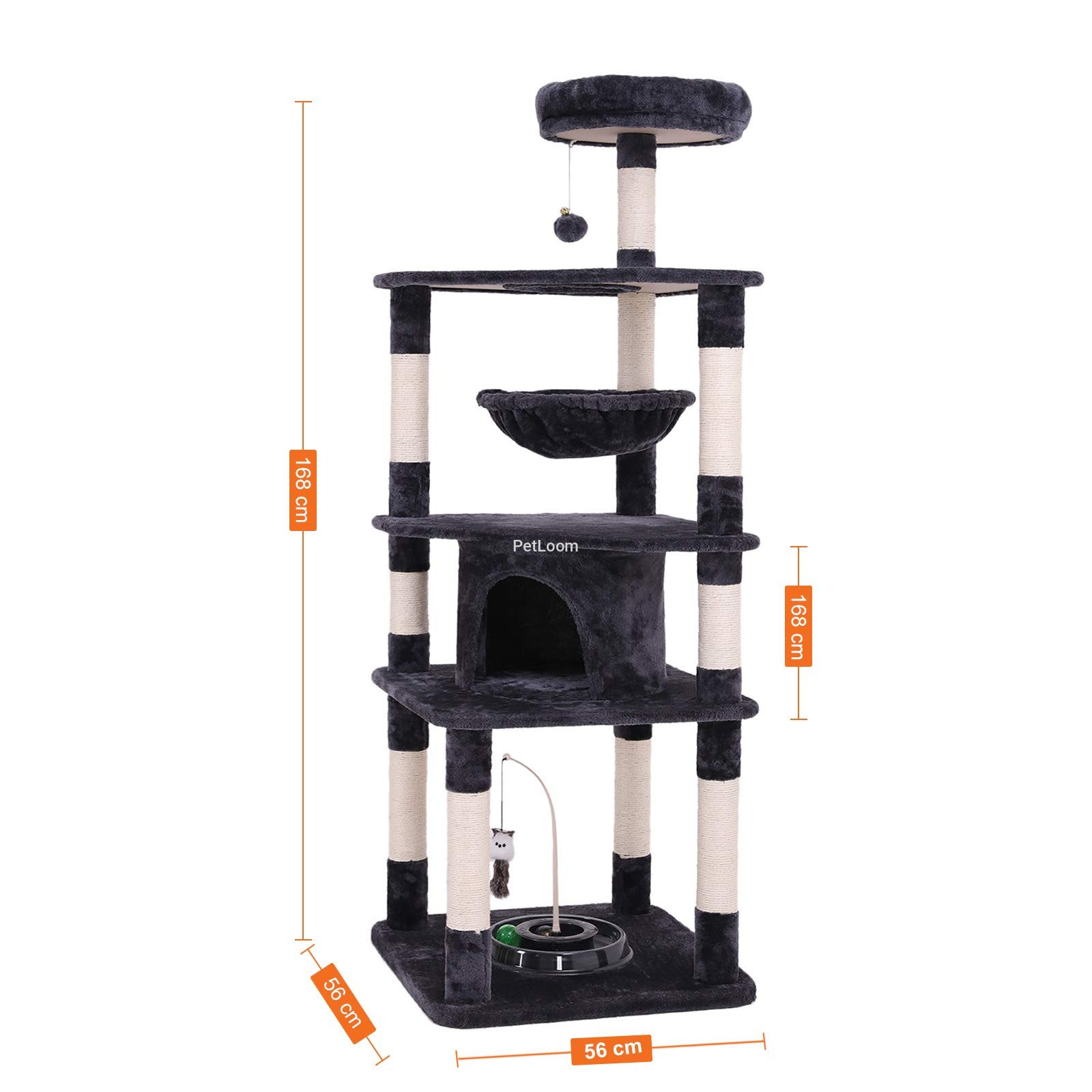 Cat Tree Tower – Multi-Level Scratching Post with Condo, Hammock & Toys (168 cm)