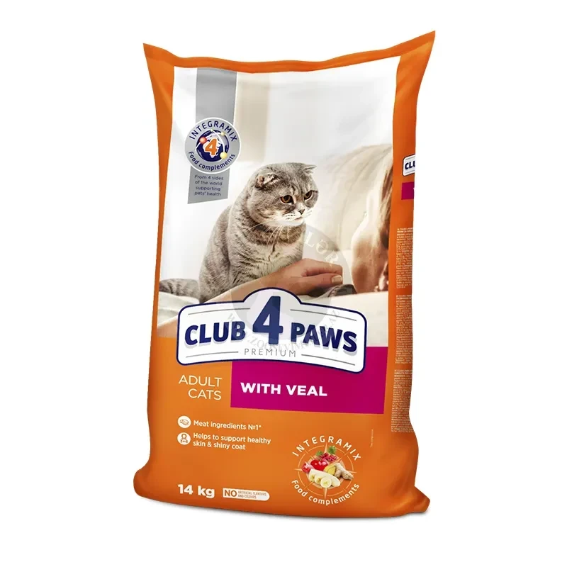 CLUB 4 PAWS Premium "With Veal"—Complete Dry Pet Food for Adult Cats