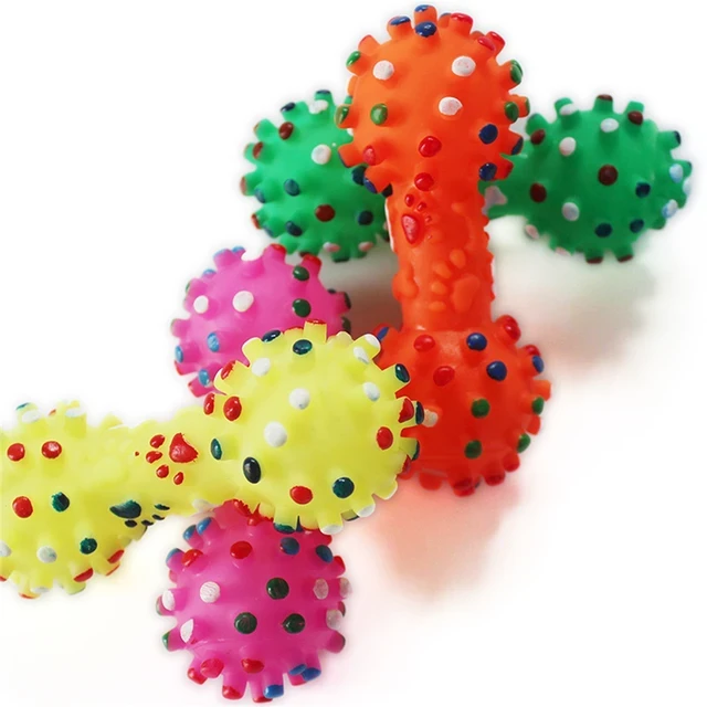 Bright, bouncy, and fun—this colorful dumbbell-shaped chew toy is designed to keep your dog engaged and active. Made from durable rubber with soft spikes and playful paw prints, it helps satisfy chewing instincts while promoting dental health.