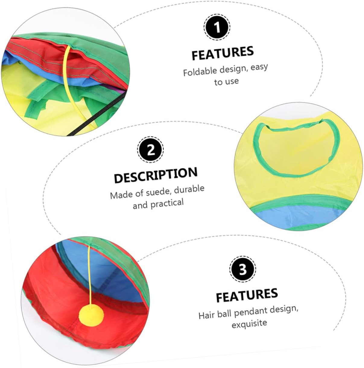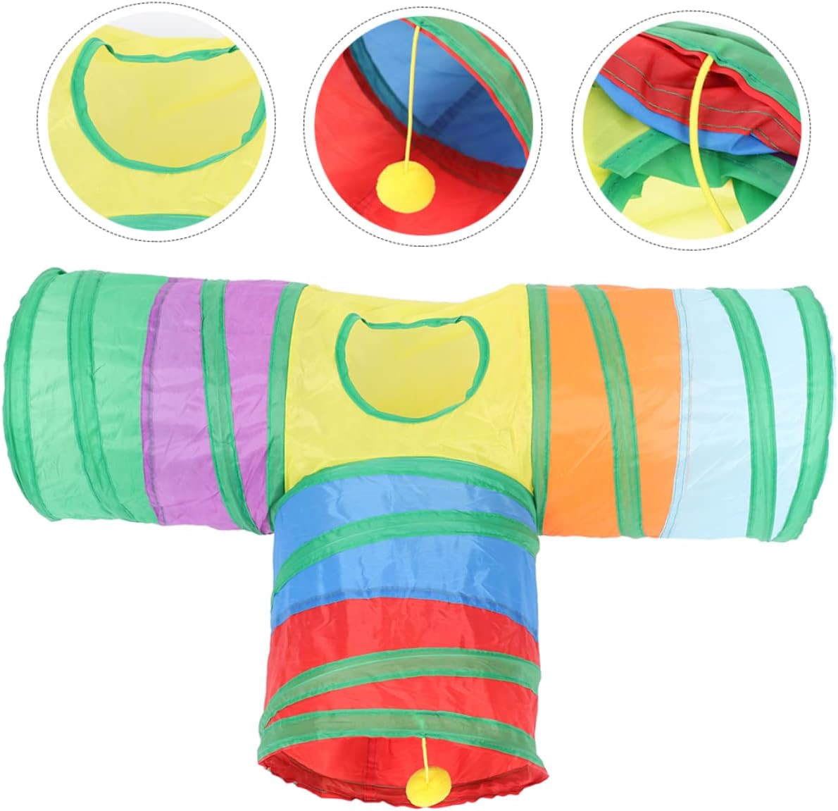 Colorful Foldable Cat Tunnel – Three-Way Play with Peek Hole & Hanging Ball