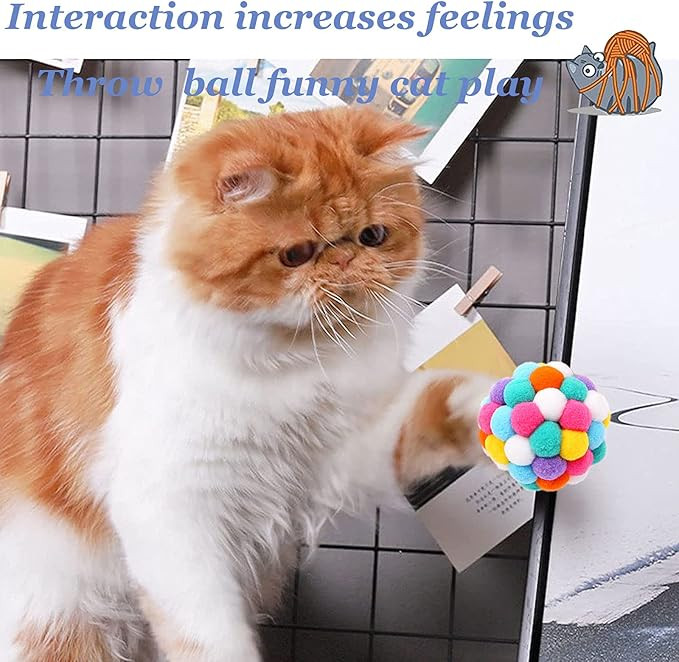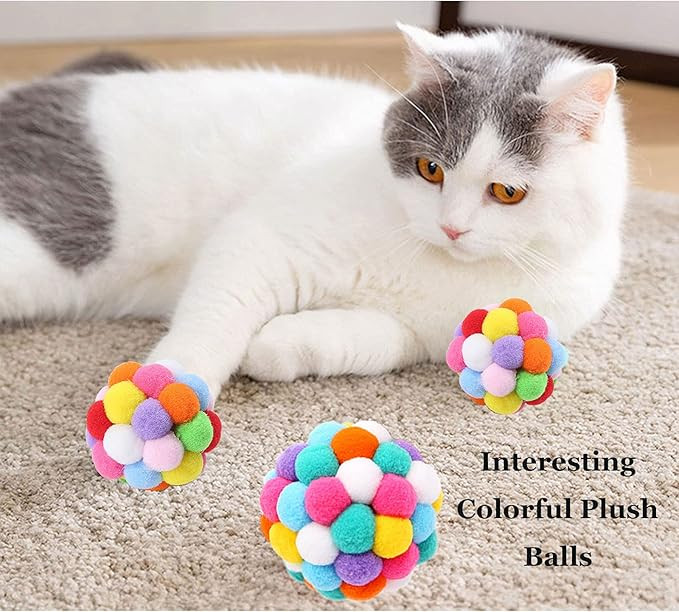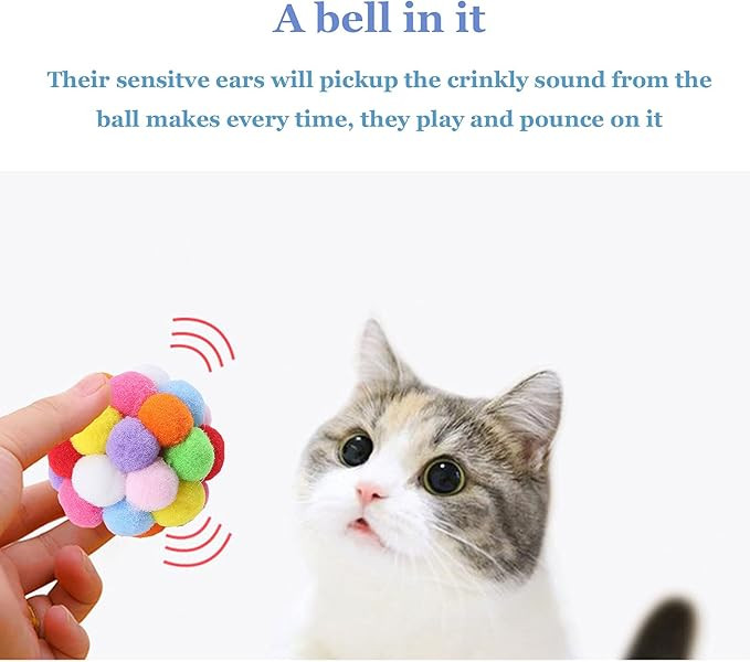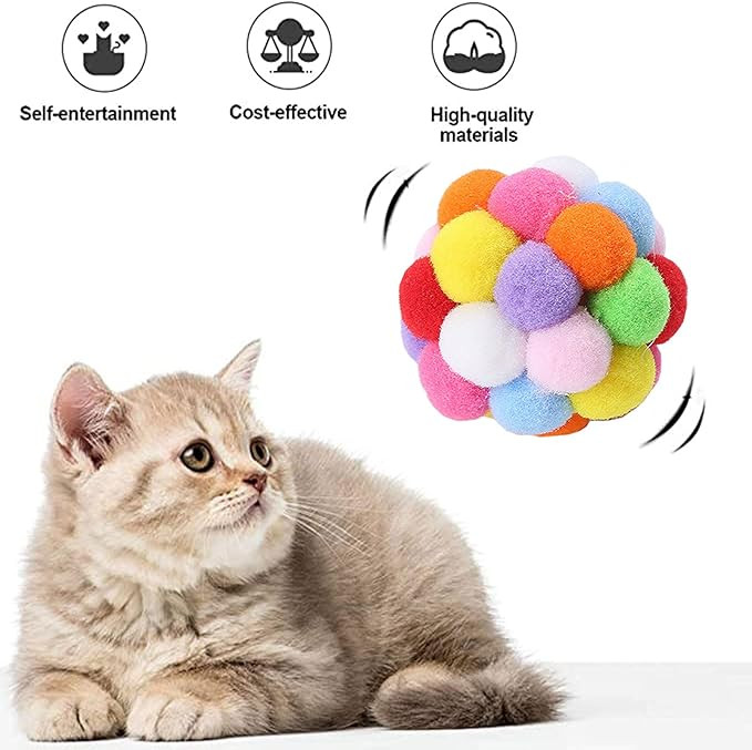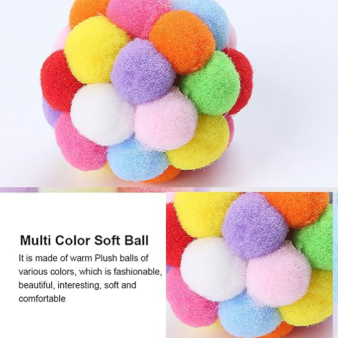 This multi-color soft ball is designed to delight and entertain your cat. Made from a collection of plush pom-poms, the ball is soft, fluffy, and gentle on your cat’s paws and teeth. Inside the ball, a tiny bell creates a light crinkling sound that draws your pet’s attention and encourages playful interaction. Whether your cat is batting, chasing, or carrying it, this toy is sure to become a favorite.