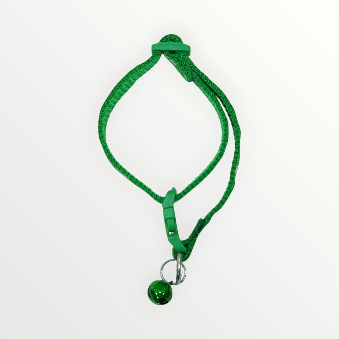 Add a touch of elegance to your cat’s look with this dark green collar, crafted for comfort and everyday durability. It features a matching green bell that produces a soft jingle, helping you keep track of your pet effortlessly. The adjustable design ensures a secure and tailored fit for cats of all sizes.