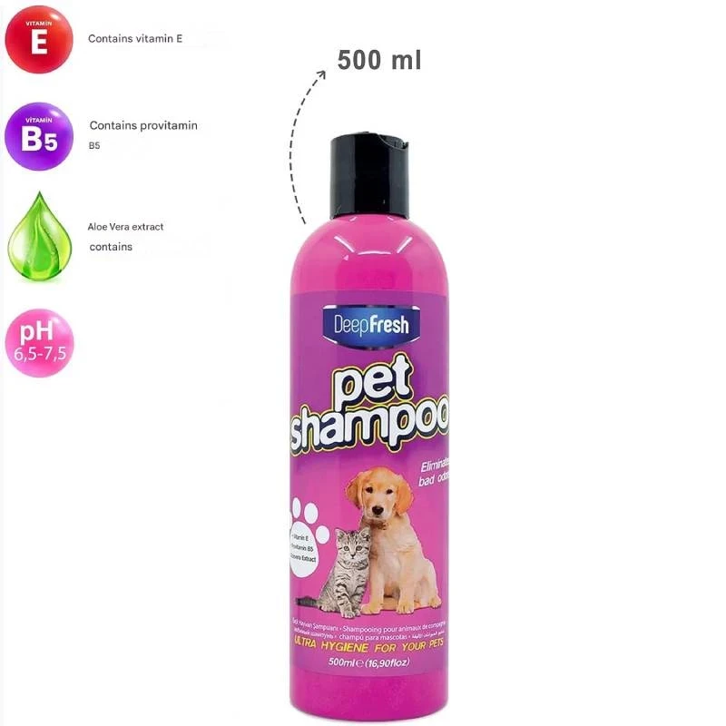 Give your pets the care they deserve with Deep Fresh Pet Shampoo, specially formulated to eliminate bad odors and support skin and coat health. Enriched with Vitamin E, Provitamin B5, and Aloe Vera extract, it ensures gentle yet effective cleaning while maintaining the natural balance of your pet’s skin with a safe pH level of 6.5–7.5.