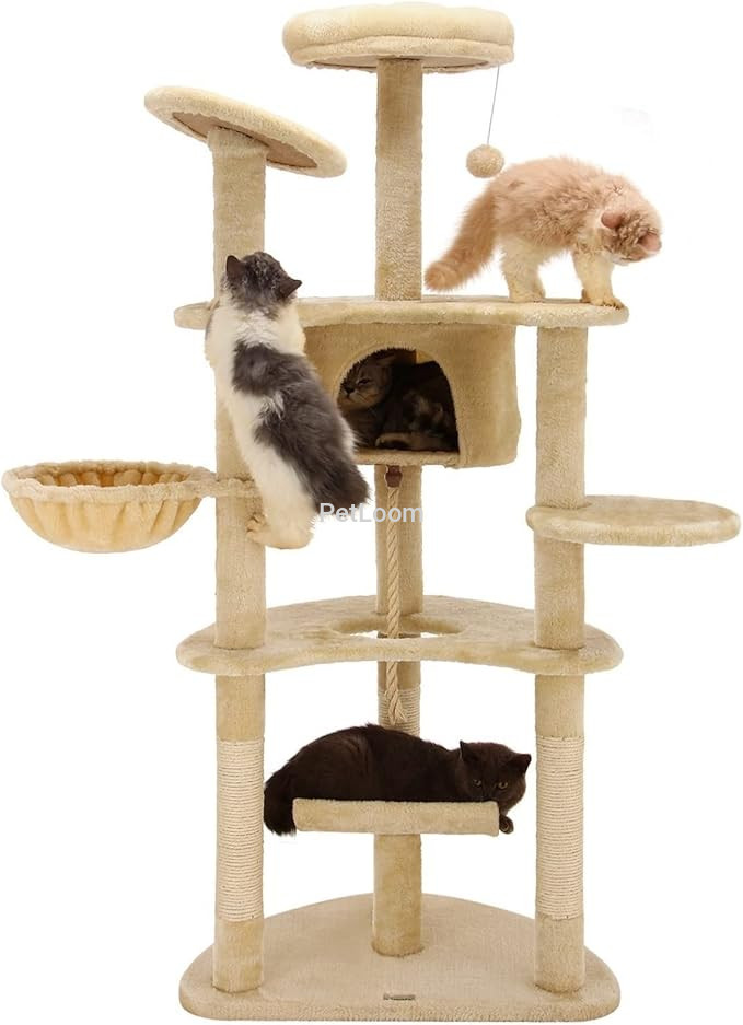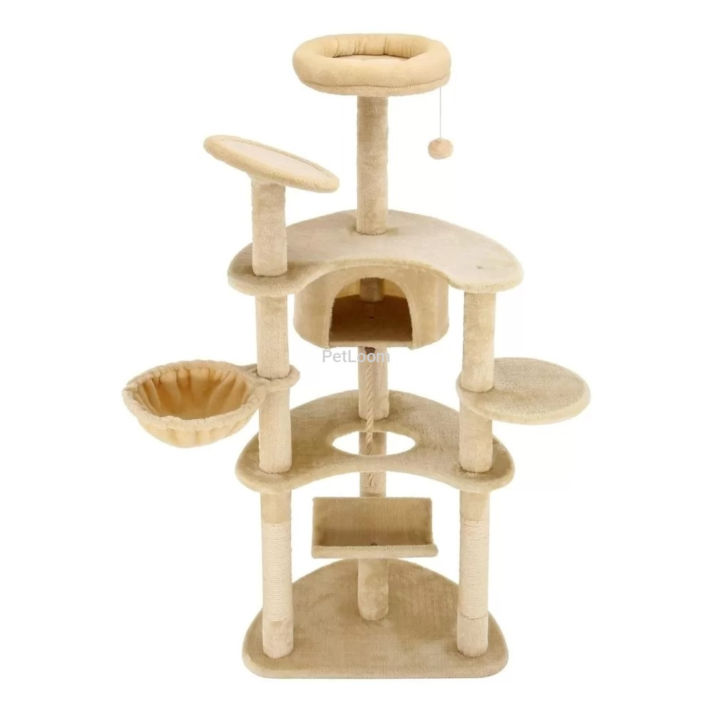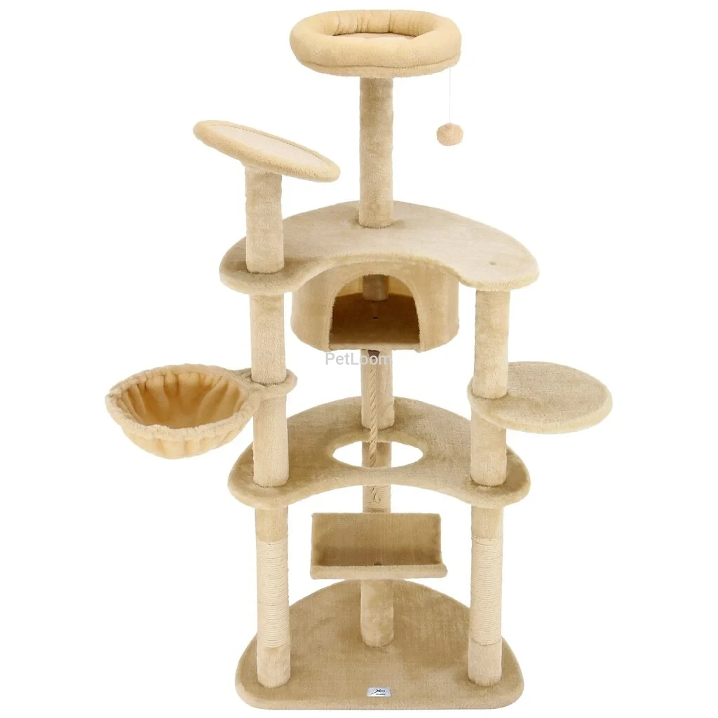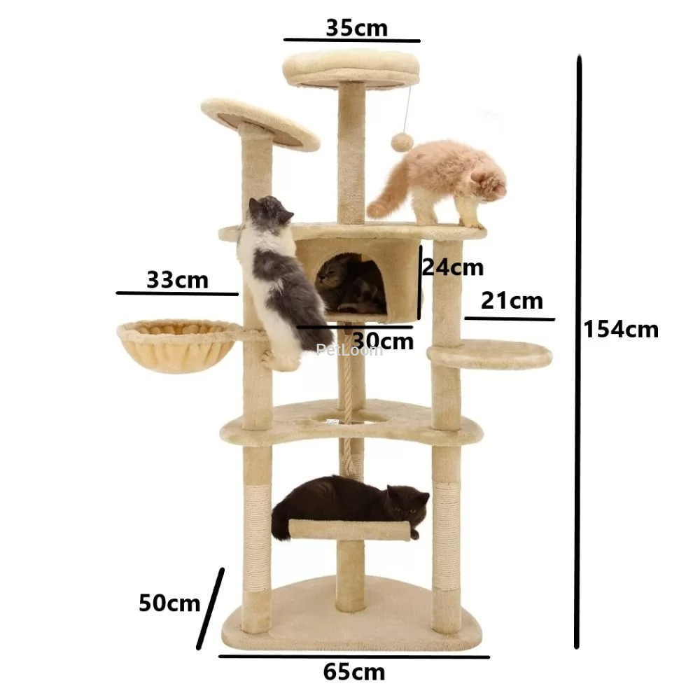Deluxe Beige Cat Tree – Multi-Level Cat Condo with Scratching Posts, Perches & Hammock (154 cm)