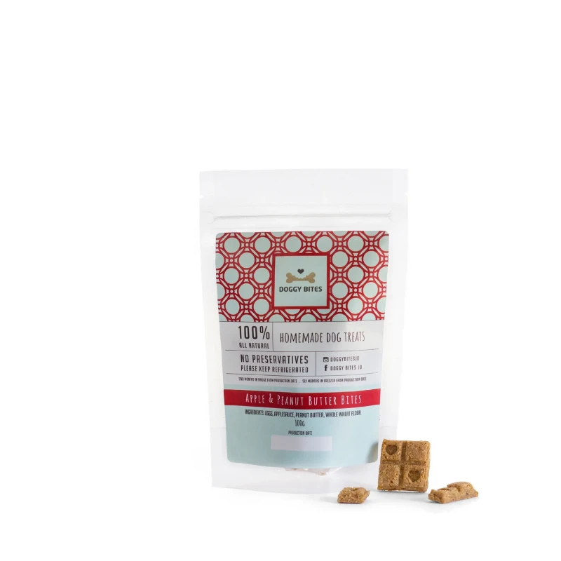 Crafted with care and 100% natural ingredients, Doggy Bites Apple & Peanut Butter Bites are a delicious way to reward your furry friend without added preservatives or fillers.