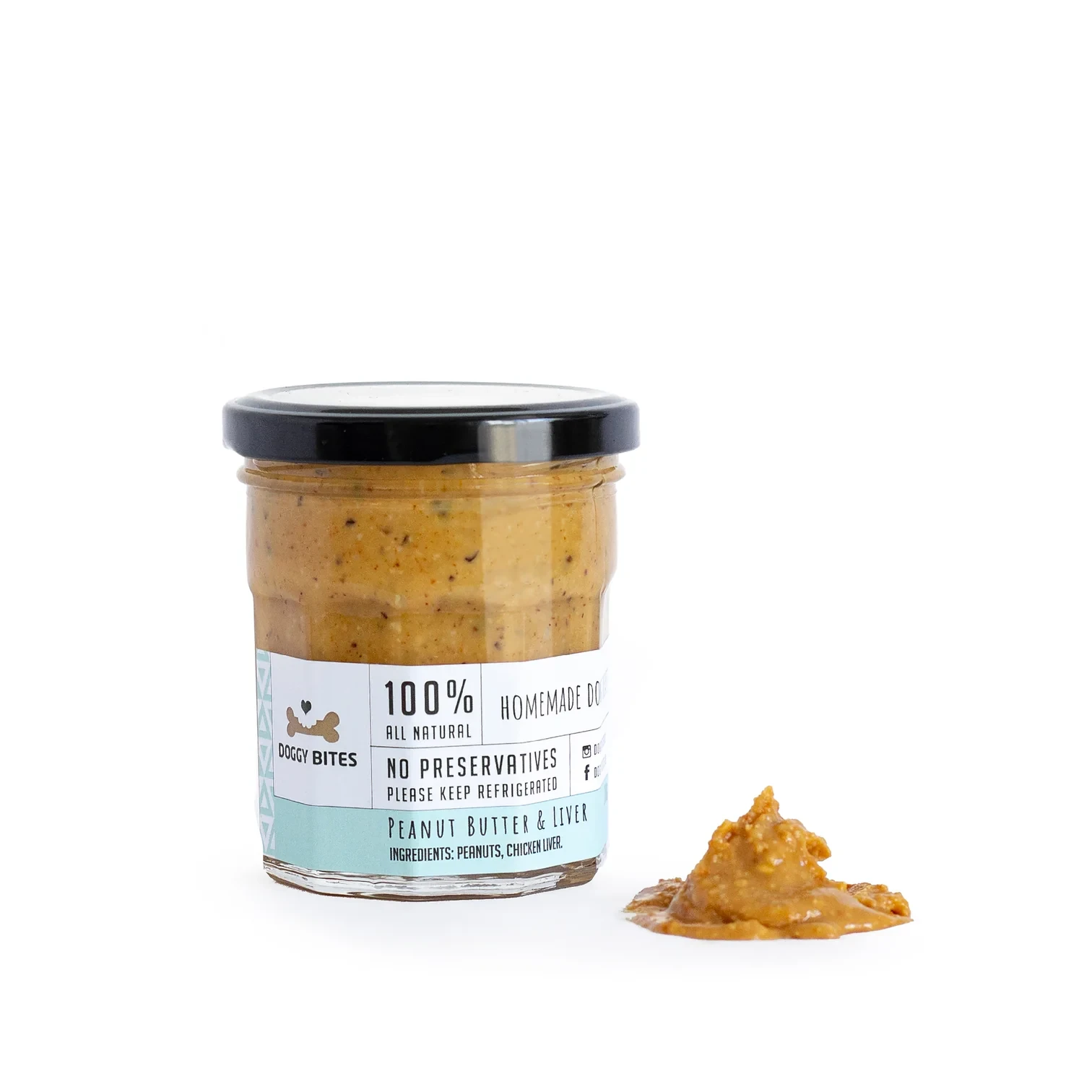 Doggy Bites Peanut Butter with Liver Chunks is a wholesome, homemade spread your dog will go nuts for! Crafted from just two simple ingredients—roasted peanuts and chicken liver—this all-natural peanut butter is free from sugar, xylitol, salt, preservatives, and anything artificial.