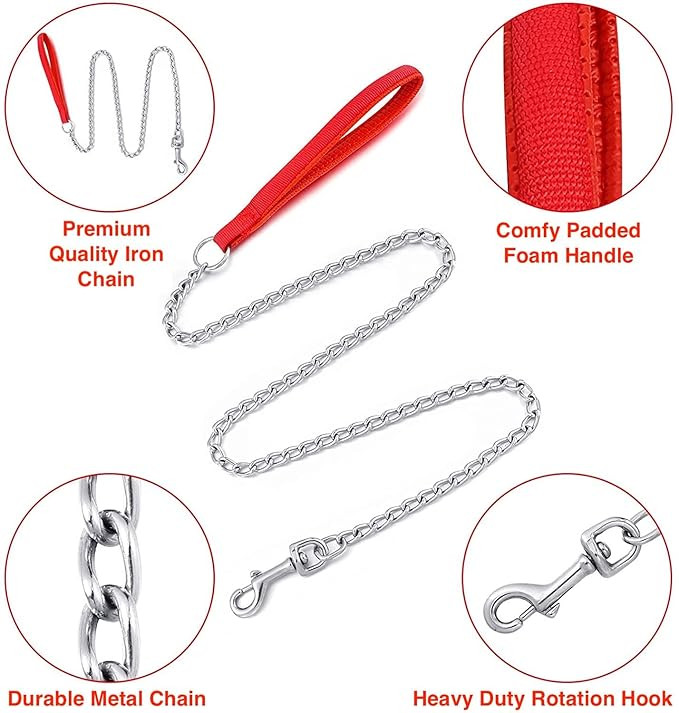 This high-quality metal dog chain leash is designed for durability, strength, and comfort, making it an excellent choice for daily walks, training sessions, and outdoor activities. The heavy-duty stainless steel chain is rust-resistant and built to handle strong, energetic dogs, ensuring long-lasting performance.