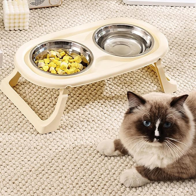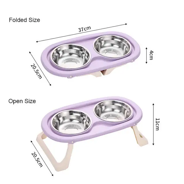 This dual-bowl pet feeder combines practicality and smart design, offering two stainless steel bowls in a colorful raised platform. The foldable stand allows for easy storage and adjustable feeding height, supporting better digestion and posture for your pet.