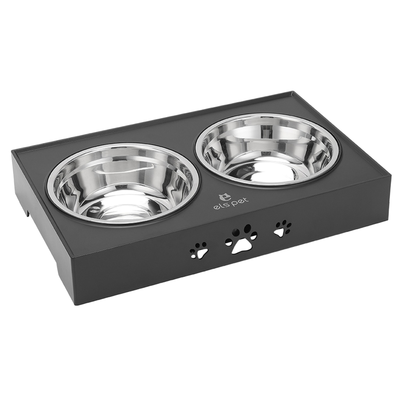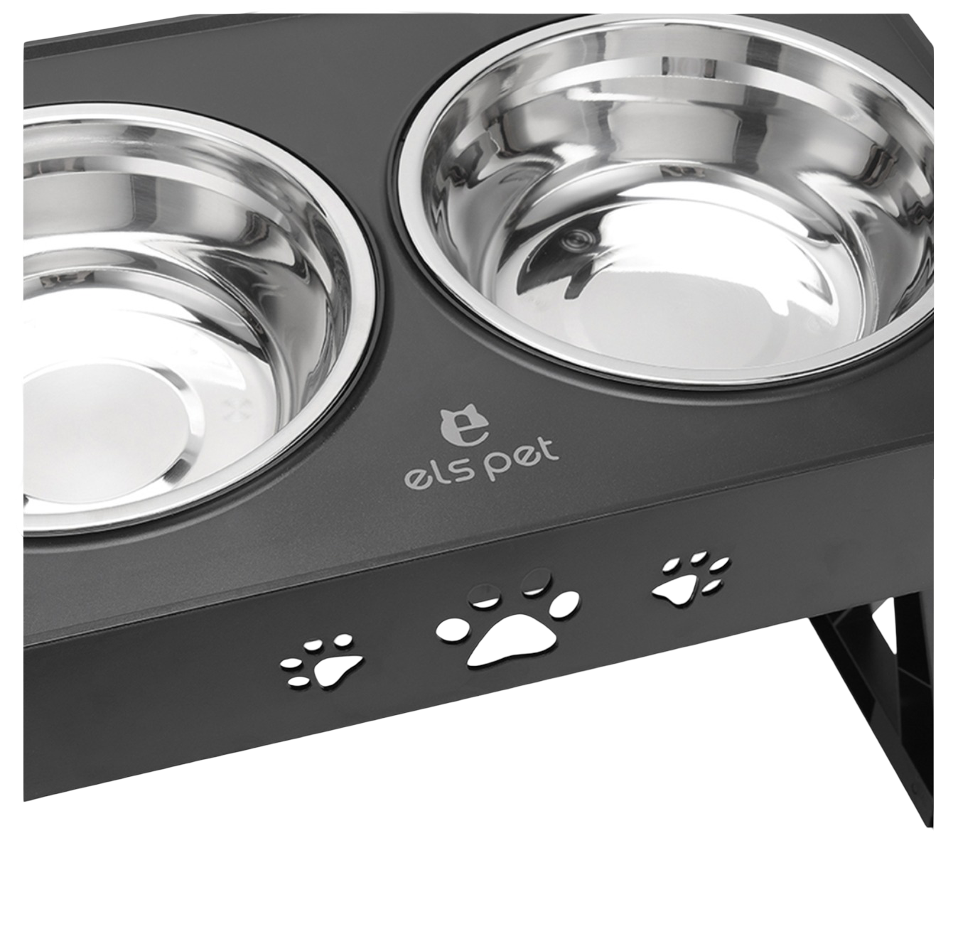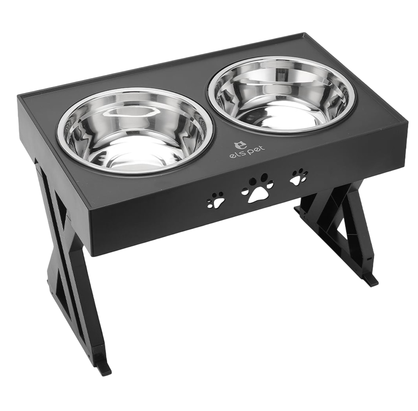 Els Pet Plastic Elevated Double Pet Feeder – With 2 Stainless Steel Bowls