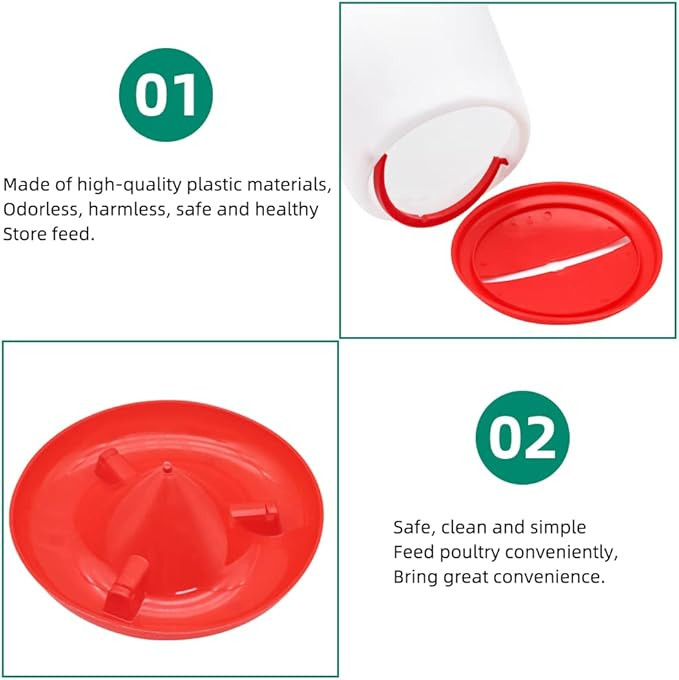 - High-Quality Materials: Made from durable, non-toxic plastic that is safe and healthy for storing feed or water.