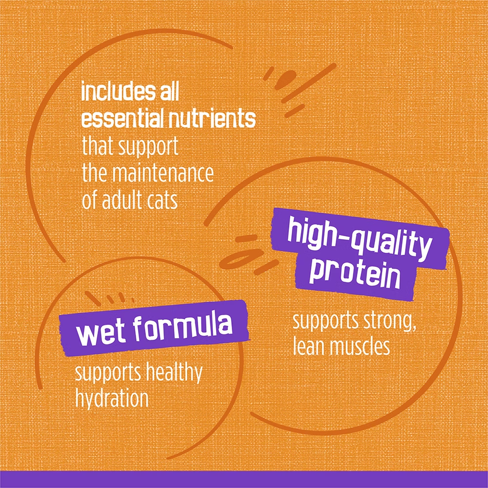 - Wet food for cats delivers 100% complete and balanced nutrition for adult cats with essential vitamins and minerals and no artificial colors or preservatives