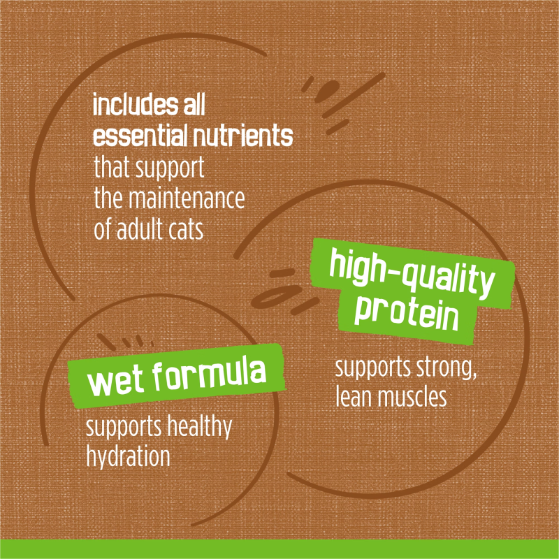 - Canned cat food with 100 percent complete and balanced nutrition for adult cats containing essential vitamins and minerals and no artificial colors or preservatives