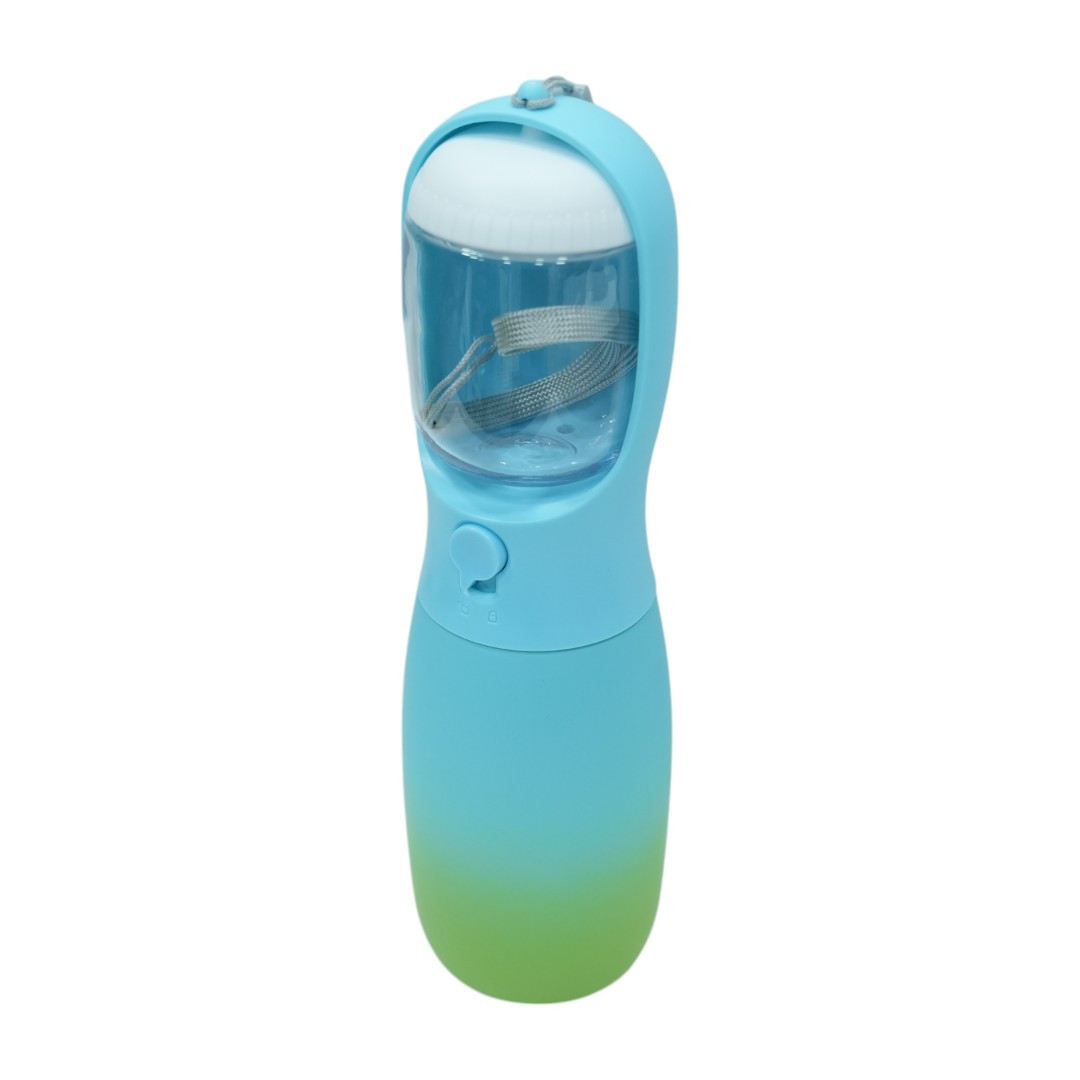 This stylish gradient portable pet water bottle features a blue-to-green color fade, adding a touch of flair to your pet's essentials. Designed for convenient hydration during outdoor activities, it includes a button-lock feature for spill-proof usage. The bottle’s cap doubles as a wide drinking bowl, ensuring comfort for your pet. Lightweight and easy to carry, it’s perfect for walks, hiking, or trips.
