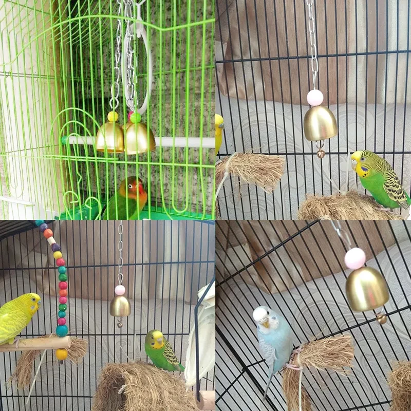 The Hanging Bell Toy is an interactive and engaging accessory designed to provide auditory and physical stimulation for birds. Featuring three golden bells suspended from durable metal chains, this toy encourages natural curiosity, playfulness, and beak exercise.
