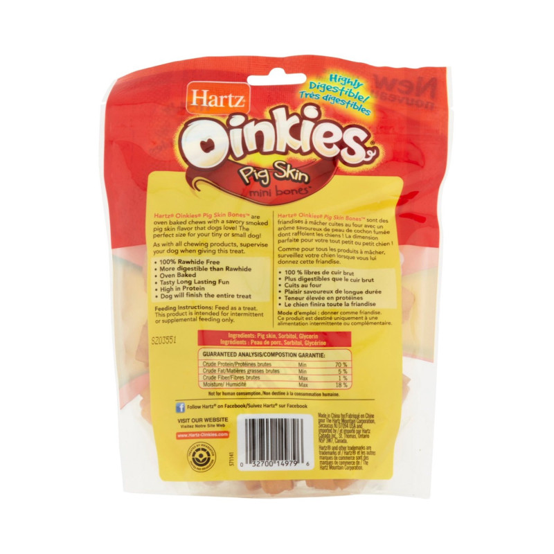 Give your dog the delicious and safe chewing experience they deserve with Hartz Oinkies Pig Skin Mini Bones. Perfect for training, rewarding, or just showing some love!