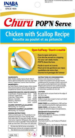 INABA Churu Pop'N Serve Chicken with Scallop Recipe Cat Treats