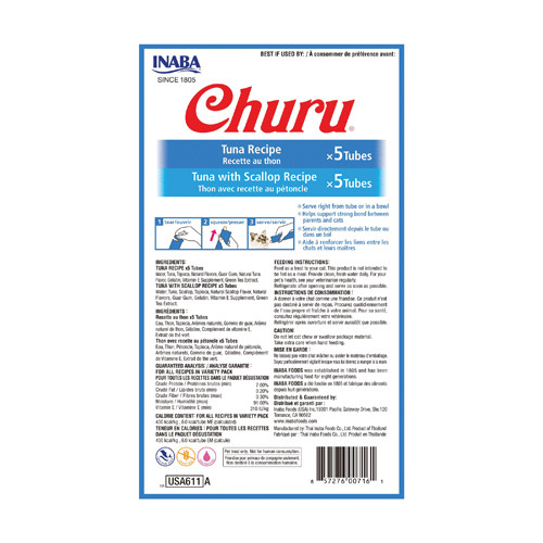 Inaba Churu Tuna Variety Pack – the perfect mix of tuna and scallop in a creamy, lickable treat to keep your cat happy, healthy, and hydrated every day.