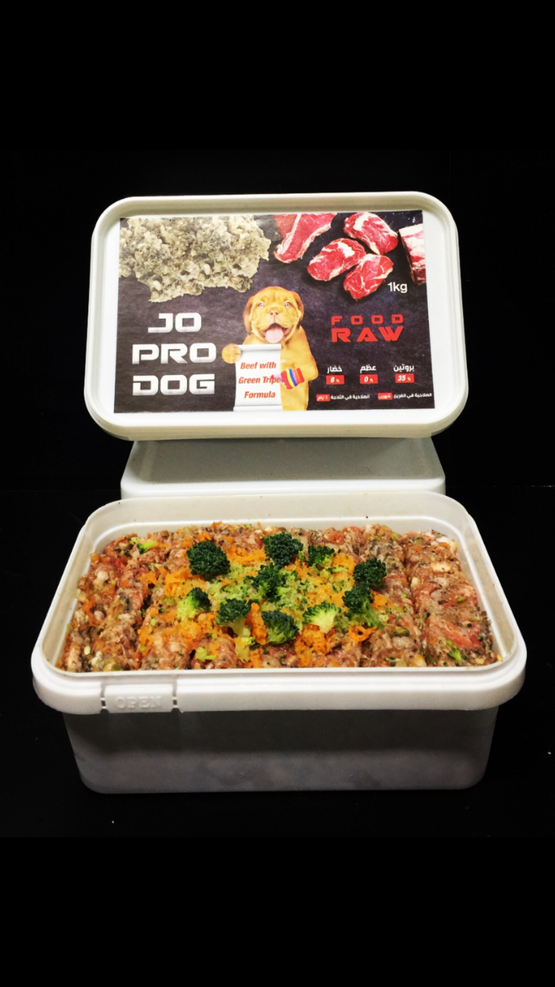 Jo Pro Dog Beef with Green Tripe Formula is a bone-free, balanced, and high-protein meal made from 100% human-grade ingredients. Crafted for dogs aged 2 months and above, this nutrient-rich formula combines fresh beef with green tripe — a natural source of probiotics, enzymes, and amino acids that promote gut health, strong immunity, and overall vitality.