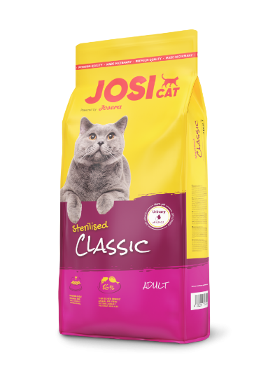 Josi Cat Sterilised Classic is a dry food tailored for sterilized adult cats, featuring a delicious chicken flavor and designed to support urinary health.