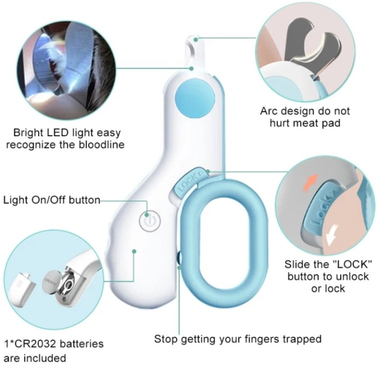 - Bright LED Light: Helps you easily recognize the bloodline in your pet's nails, ensuring safe and precise trimming.