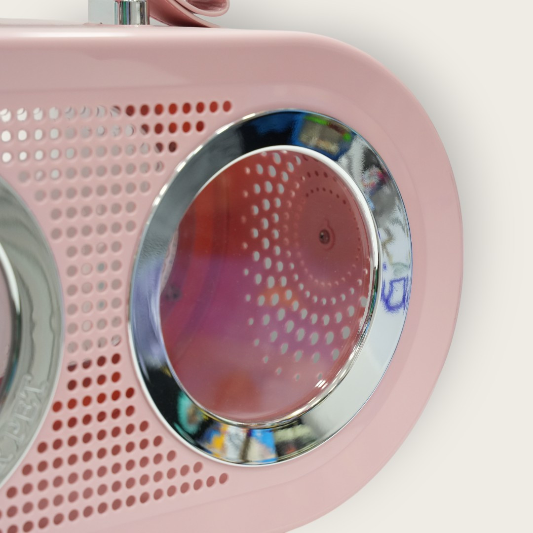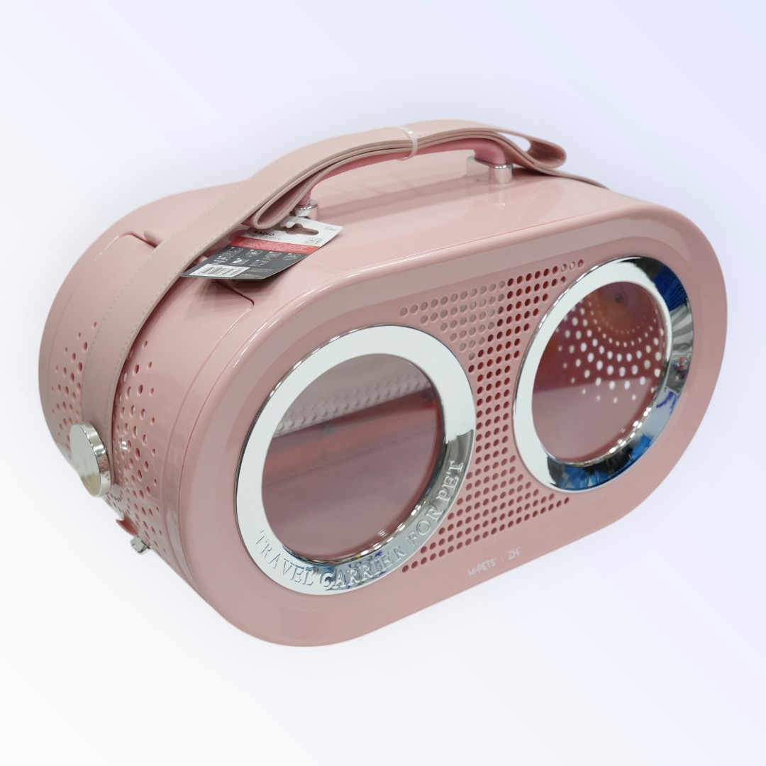 This modern and chic pet carrier by M-PETS in a soft pink hue is designed for pet owners seeking both style and functionality. The carrier features a unique dual-window design with transparent portholes that let your pet see out comfortably while traveling, reducing anxiety. The perforated front allows excellent ventilation, ensuring a fresh environment for your pet. Crafted with sturdy materials, this carrier is perfect for short trips or vet visits, combining ease of use and a fashionable appearance.