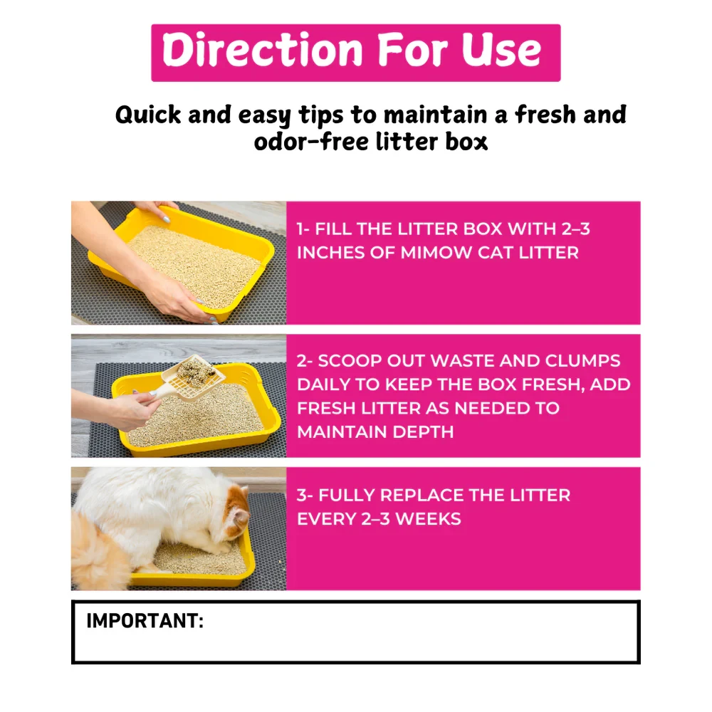 Infused with a pleasant rose fragrance, Mimow effectively neutralizes odors, keeping the litter box fresh for longer. Its anti-dust particles help maintain clean surroundings, making it ideal for cats with sensitivities.