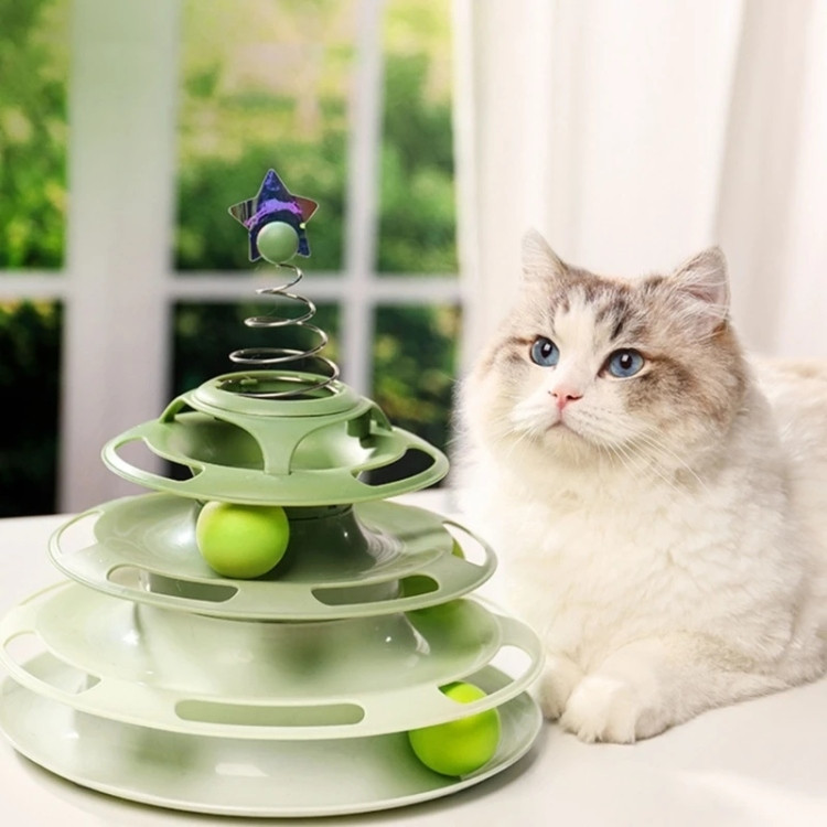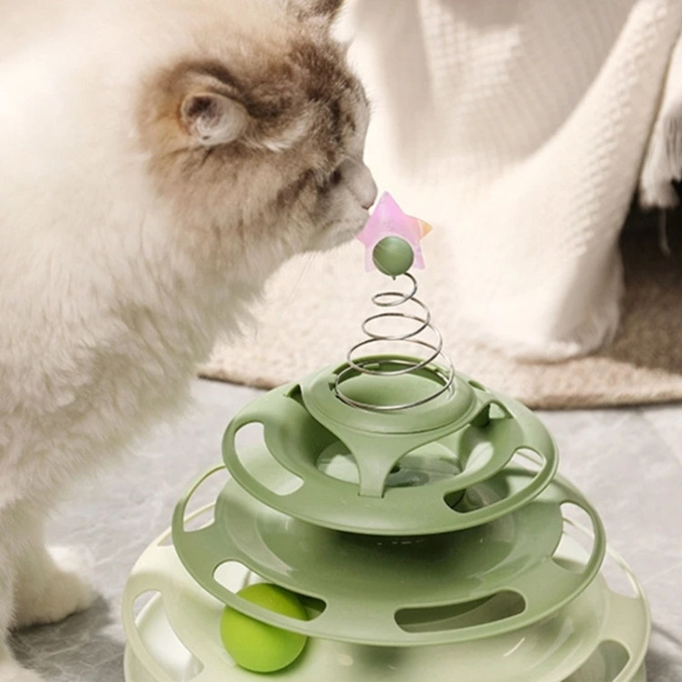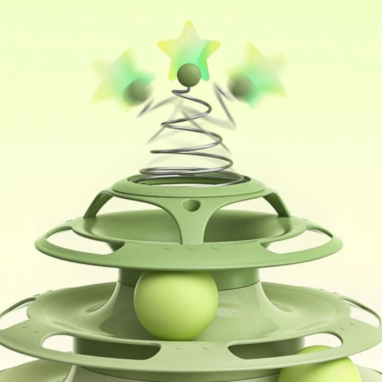 Keep your cat entertained and active with this dynamic multi-layer track toy. Featuring four tiers of rolling balls and a spring-mounted star topper, this toy encourages chasing, swatting, and interactive solo play—perfect for curious and energetic cats.