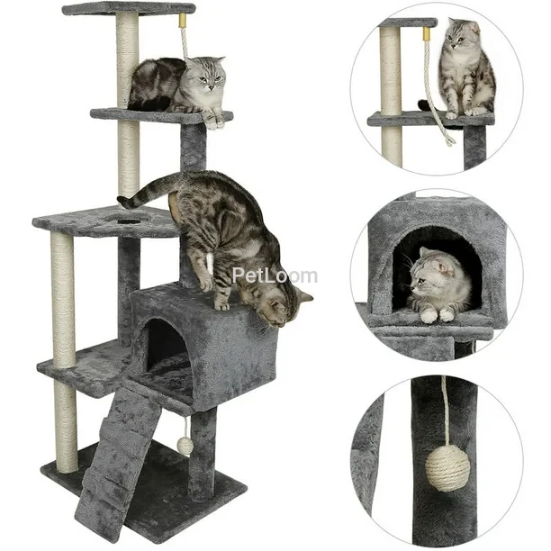 This cat tree is built with stability, comfort, and entertainment in mind. The mix of condos, ramps, and perches makes it suitable for households with multiple cats, offering both fun and rest.