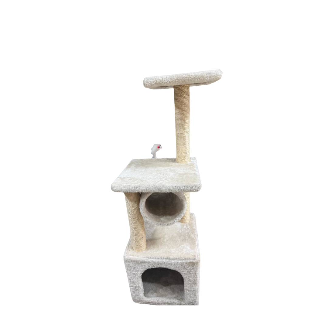 Multi-Level Structure: Three-tier design with two platforms for climbing and lounging, a cozy tunnel, and a spacious bottom condo.