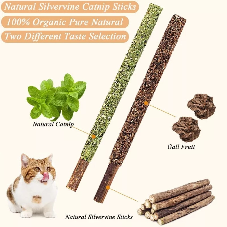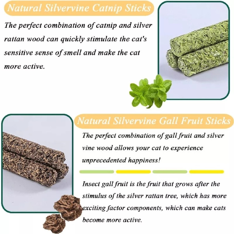 Give your cat the ultimate combination of fun and wellness with these Natural Silvervine & Catnip Chew Sticks. Crafted from pure, organic ingredients like silvervine wood, catnip, and gall fruit, these chew sticks are designed to naturally stimulate your cat's senses and support their overall health.