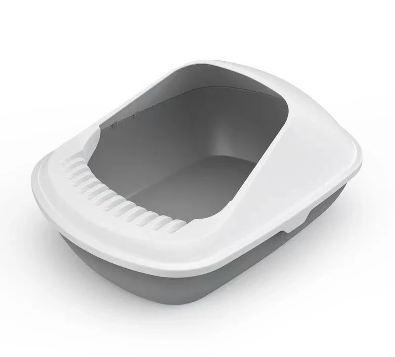 Ensure a comfortable and mess-free litter experience for your feline friend with this Open Cat Litter Box featuring a high back and low-entry design.