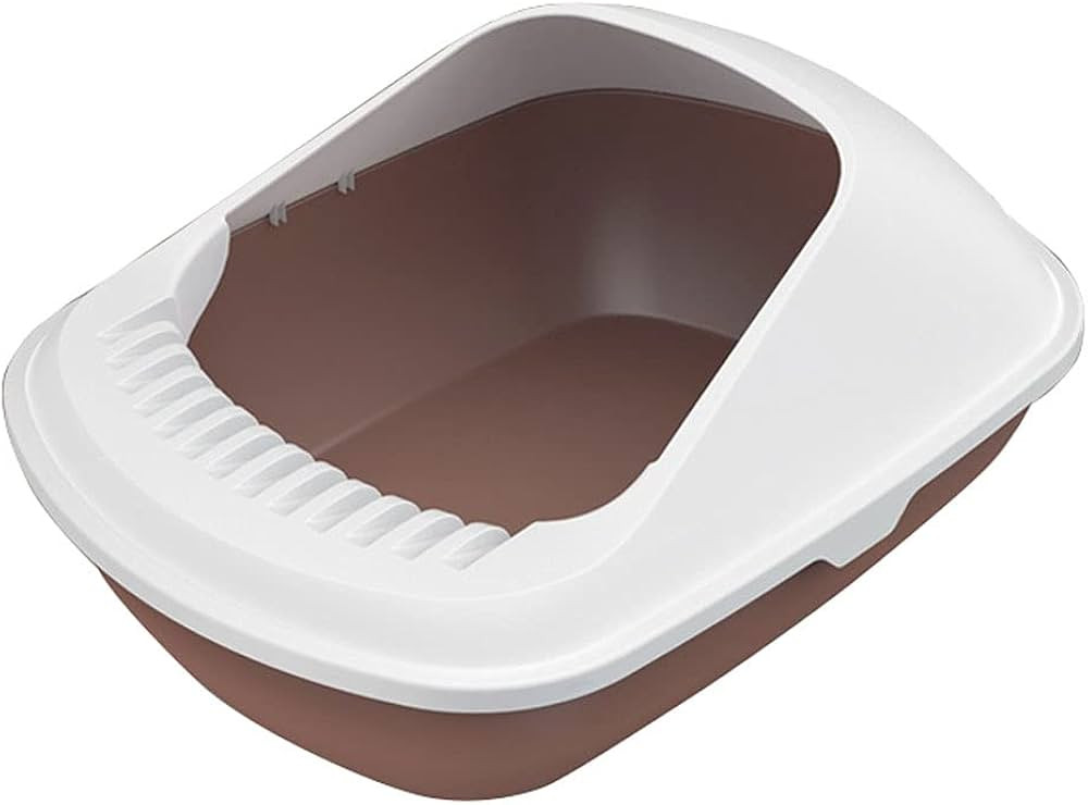 Ensure a comfortable and mess-free litter experience for your feline friend with this Open Cat Litter Box featuring a high back and low-entry design.
