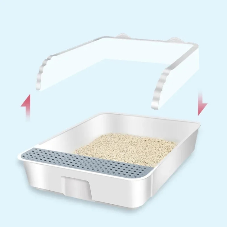 This Open Cat Litter Box with Raised Fence is designed for cleanliness, comfort, and convenience, giving your feline a spacious and hygienic litter area.