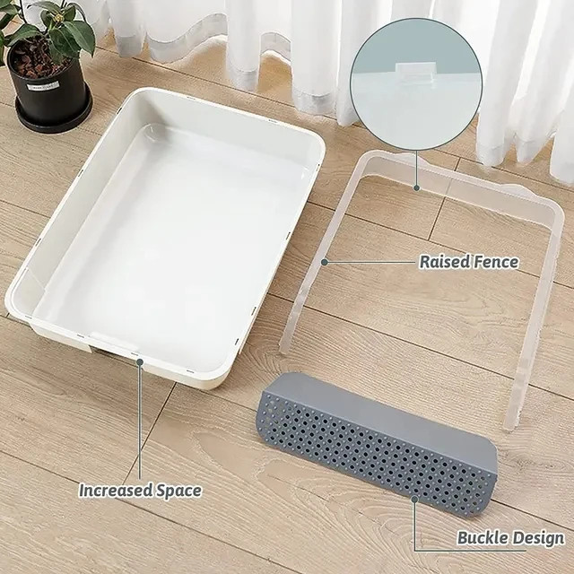 Upgrade your pet’s litter experience with the Open Cat Litter Box with Raised Fence, designed to keep your home tidy and your cat happy!