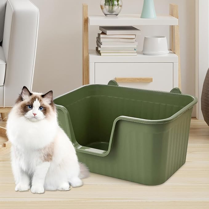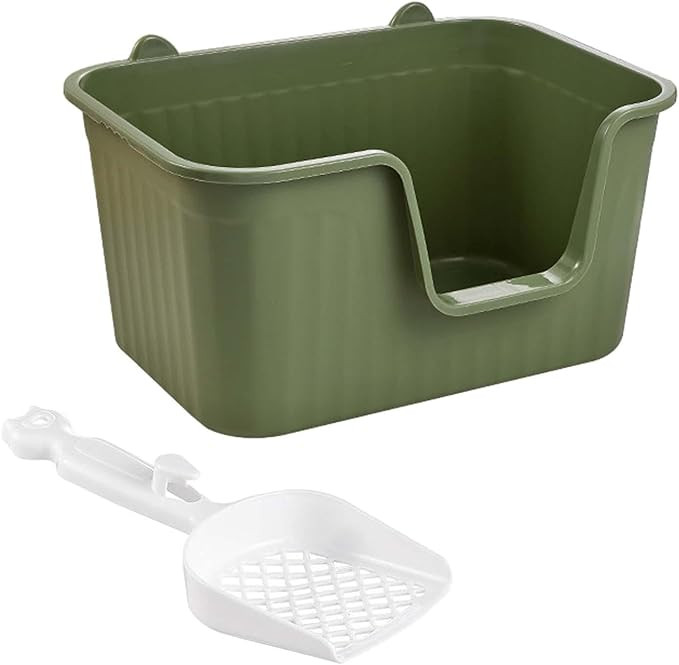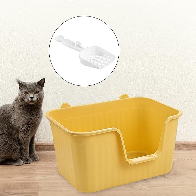Give your cat a comfortable and accessible litter space while keeping your home cleaner with this practical open litter box set. Includes a scoop for effortless daily maintenance.